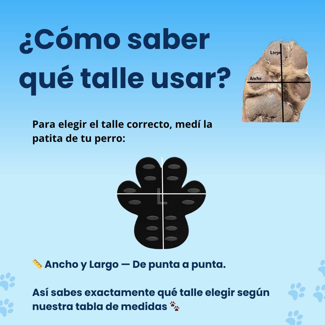 Para encontrar el talle ideal para tu peludo, solo necesitás medir su patita: